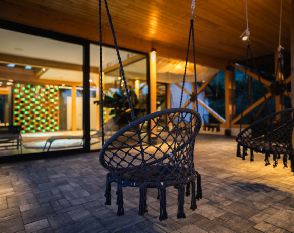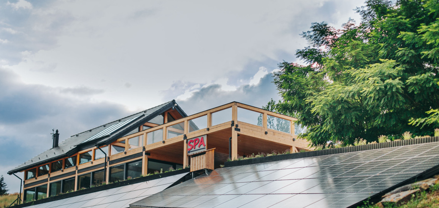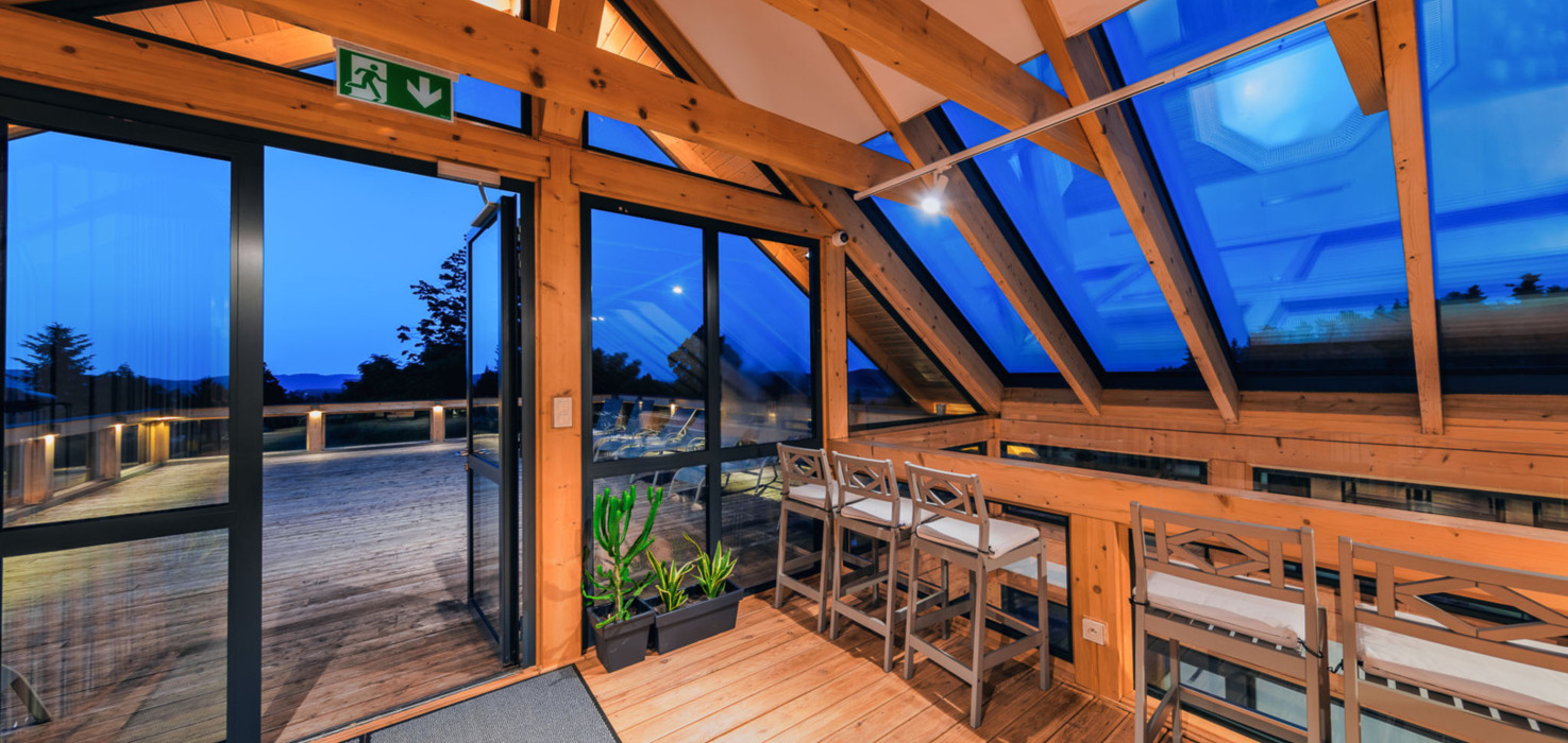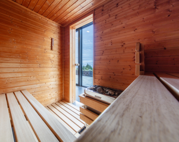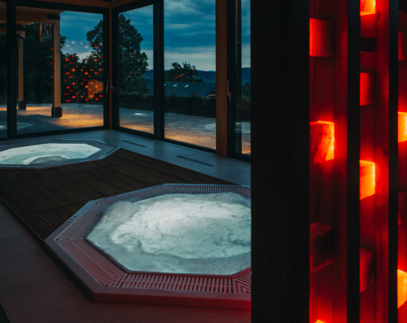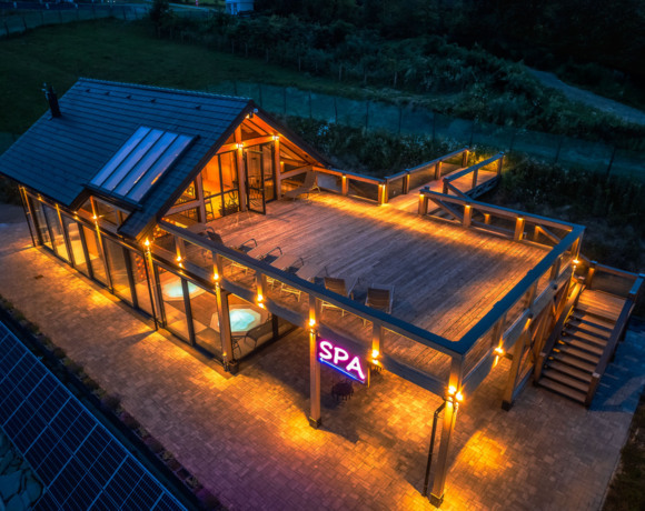 Malowniczo położony budynek SPA z przeszklonymi ścianami, pozwala na podziwianie natury i stanowi idealne miejsce dla osób ceniących komfort oraz pragnących oderwać się od codzienności. Nasza strefa SPA oferuje relaks w saunach fińskiej i tureckiej oraz odpoczynek w otoczeniu roślin. Możecie zanurzyć się w jacuzzi z widokiem na łąki, lasy, a nawet gwiaździste niebo, ciesząc się urokami okolicy o każdej porze dnia i wieczoru. Po kąpieli masującej lub wizycie w saunie, możecie się schłodzić lub rozgrzać pod „prysznicem wrażeń”, który dostarcza wyjątkowych doznań dźwiękowych, wizualnych i aromatycznych. Na piętrze czeka na Was automatyczny barman z napojami (w tym wino, lokalne piwo i cydr) oraz obszerny taras, idealny do relaksu na leżakach.